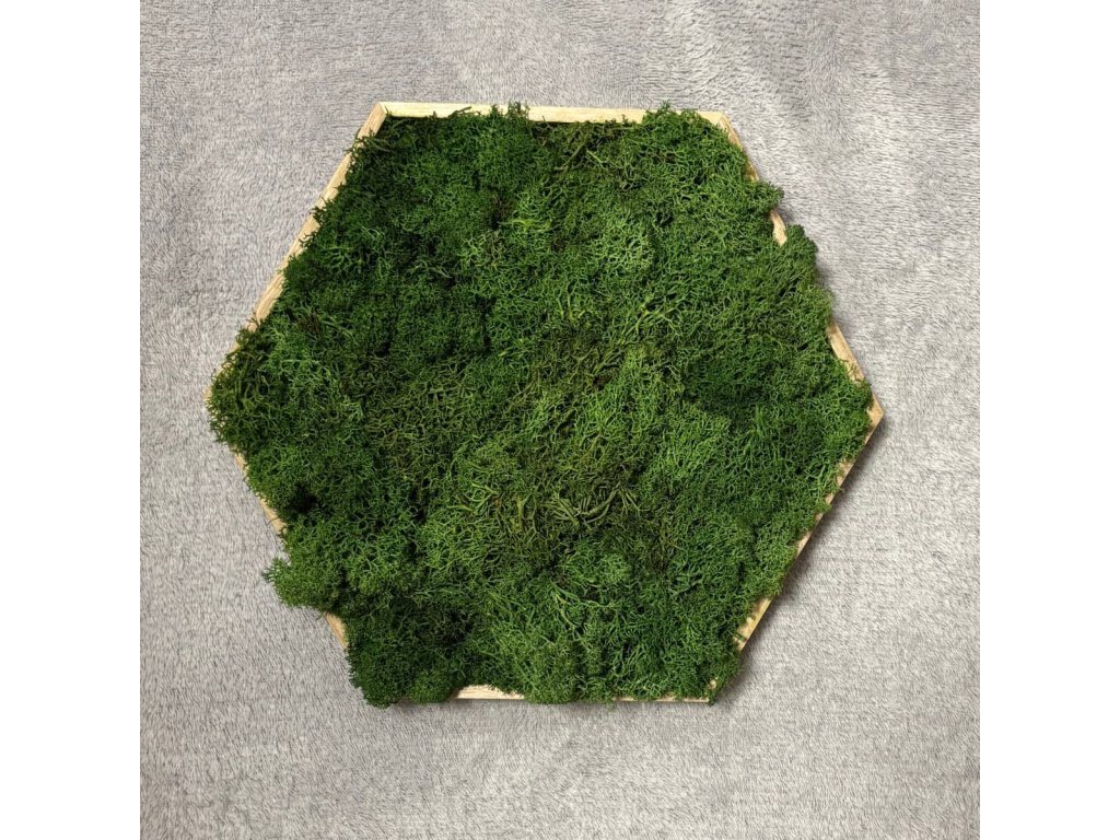 Mechový hexagon je ručně tvořená dekorace z kvalitního stabilizovaného mechu, která propojuje přírodu s moderním designem. Díky svému geometrickému tvaru působí čistě, elegantně a snadno zapadne do jakéhokoli interiéru od obývacího pokoje po pracovnu.