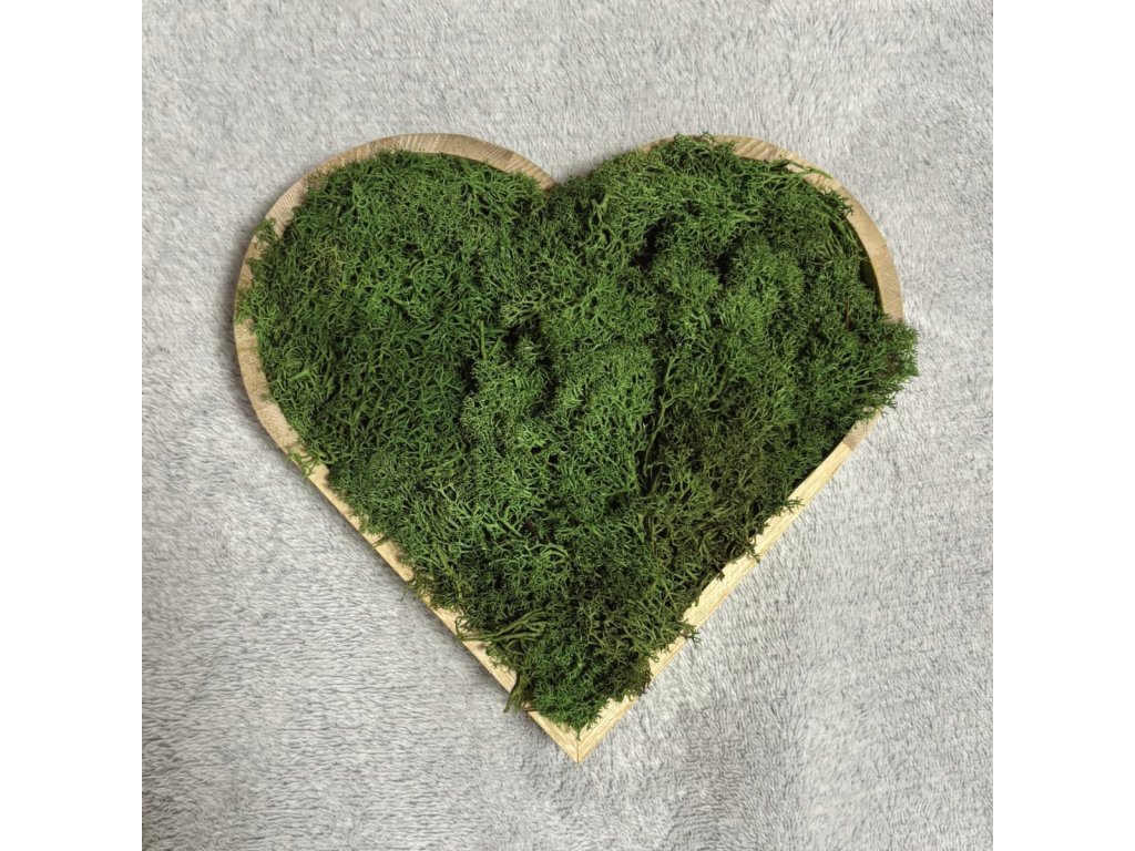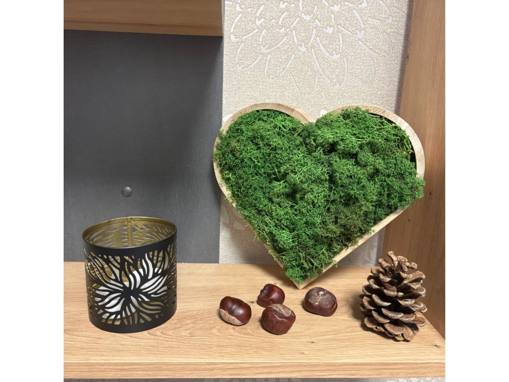 Srdce je krásným doplňkem do obývacího pokoje, chodby či ložnice na poličku nebo na zeď. Hledáte originální dárek? Spojení srdce a mechu je ideální volba.